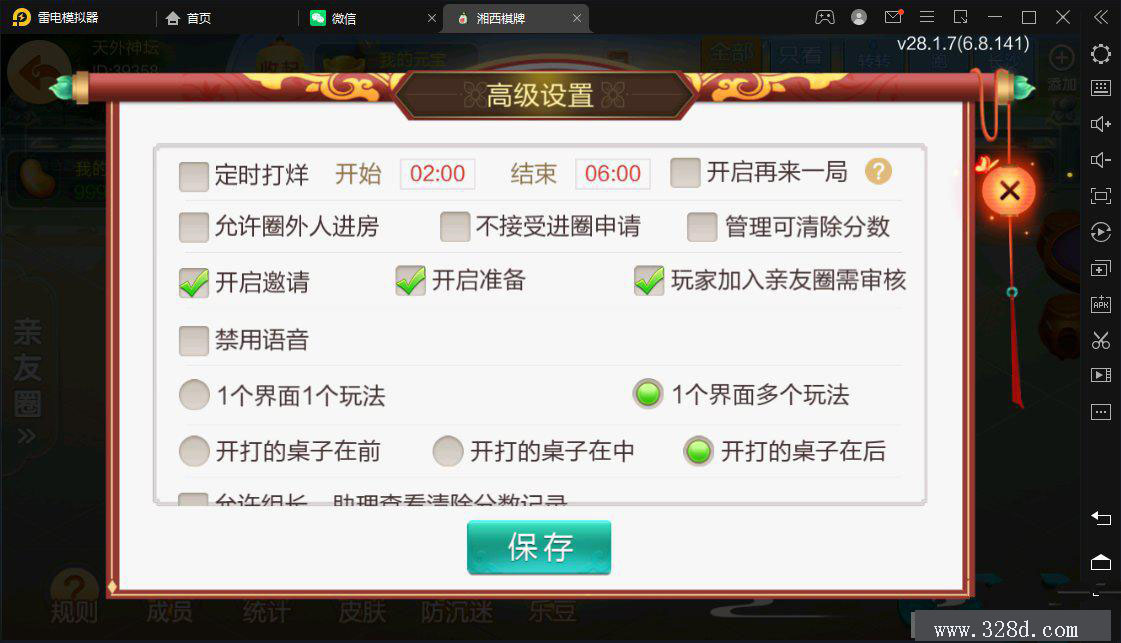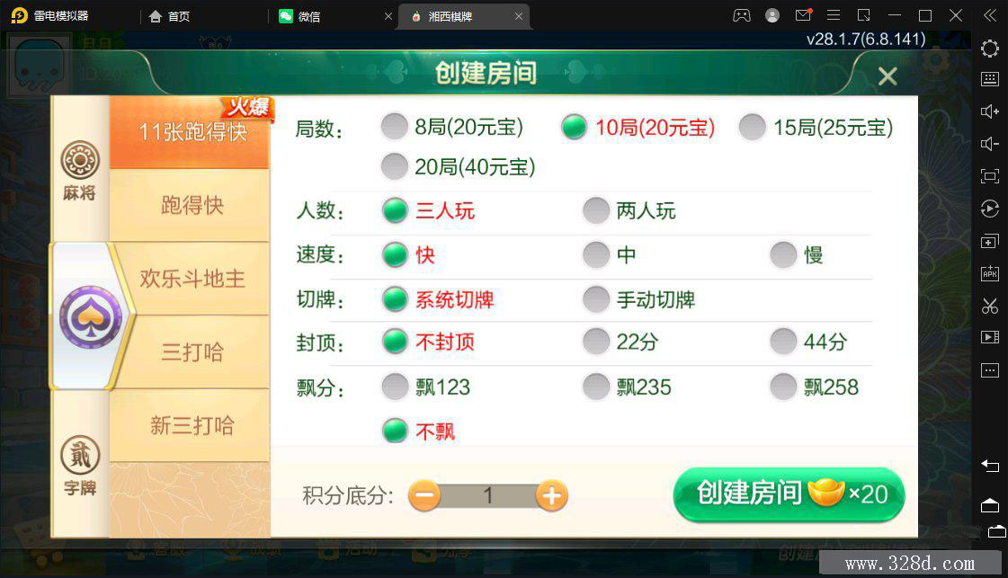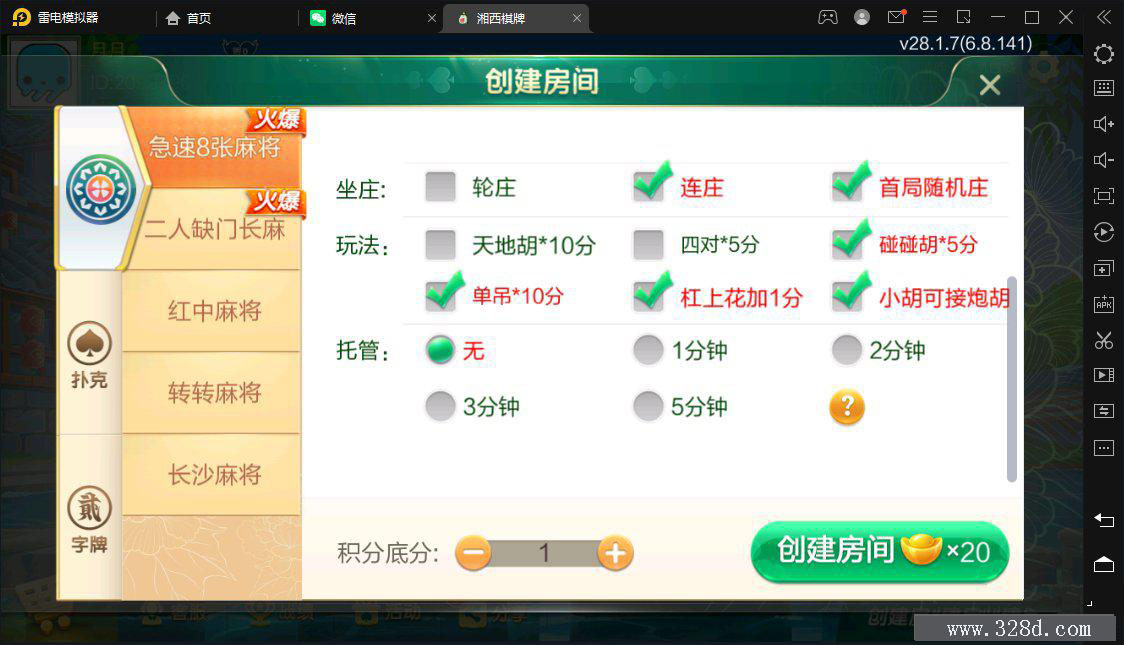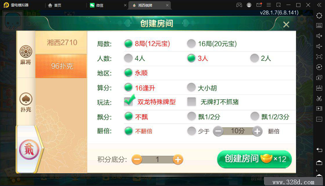 七星湘西地级市湘西麻将扑克字牌房卡端12子游戏+亲友圈乐豆模式+比赛模式+双端 附件 文件名: 七星定制湘西 提取码: ****(需购买后查看) 解压密码: ****(需购买后查看) 下载文件 附件购买 售价:168 积分 开通VIP或更高级的会员可免费下载该文件 请登录 或 注册购买 这里是自定义内容,请在【用户中心配置 - 销售配置 - 附件下载 - 未登录提示】修改 房卡约战类 转载请说明出处 内容投诉328棋牌源码资源网 » 七星湘西地级市湘西麻将扑克字牌房卡端12子游戏+亲友圈乐豆模式+比赛模式+双端