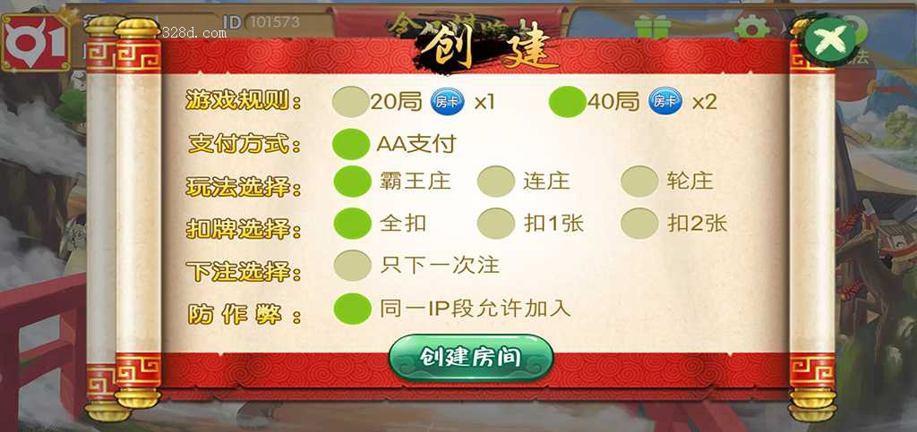 游戏玩法将使用房卡模式进行,大厅菜单含有玩家活动项目、帐号设置、玩法规则浏览等选项。