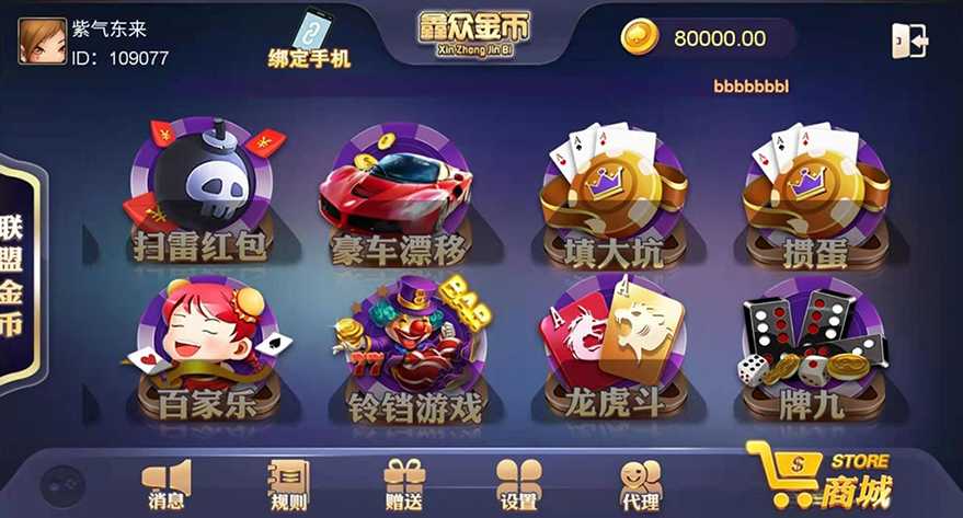 鑫众金币版大联盟含代理+银商功能。网狐全新二次开发鑫众,游戏大厅UI界面设计单调,玩法属于金币类型,支持大联盟模式。含代理推广功能,支持免费加盟用户只要有业绩就能获得奖励,支持玩家使用微信,或账号注册登录平台。