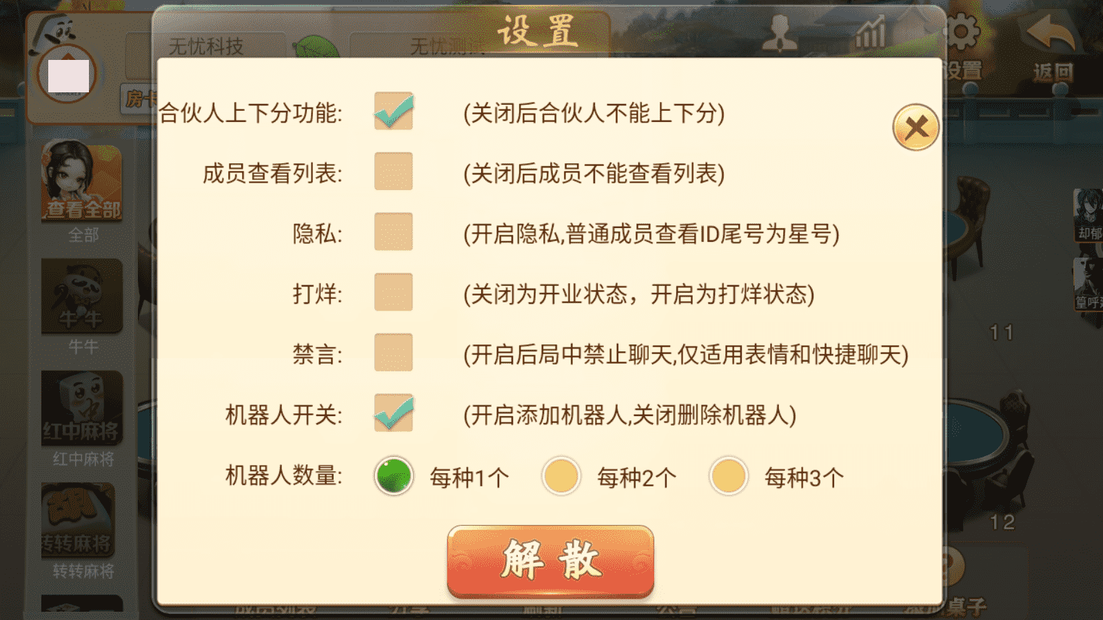 这套全新量推房卡棋牌游戏,java服务游戏,支持大联盟,游戏包括红中麻将、转转麻将、血战麻将、血流麻将、捉鸡麻将、平阳台炮、灵溪麻将、三门麻将、柳州麻将、点炮麻将、长沙跑胡子、衡阳跑胡子、郴州跑胡子、多人十三水、 斗地主、跑得快、炸金花、温州十三水等游戏,游戏有控制而且很强悍,带机器人占位,这个版不管ui还是功能都是非常不错的,这个也是花了很长时间做的。